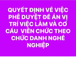 QUYẾT ĐỊNH VỀ VIỆC PHÊ DUYỆT ĐỀ ÁN VỊ TRÍ VIỆC LÀM VÀ CƠ CẤU VIÊN CHỨC THEO CHỨC DANH NGHỀ NGHIỆP