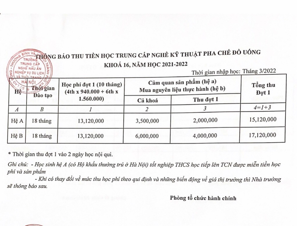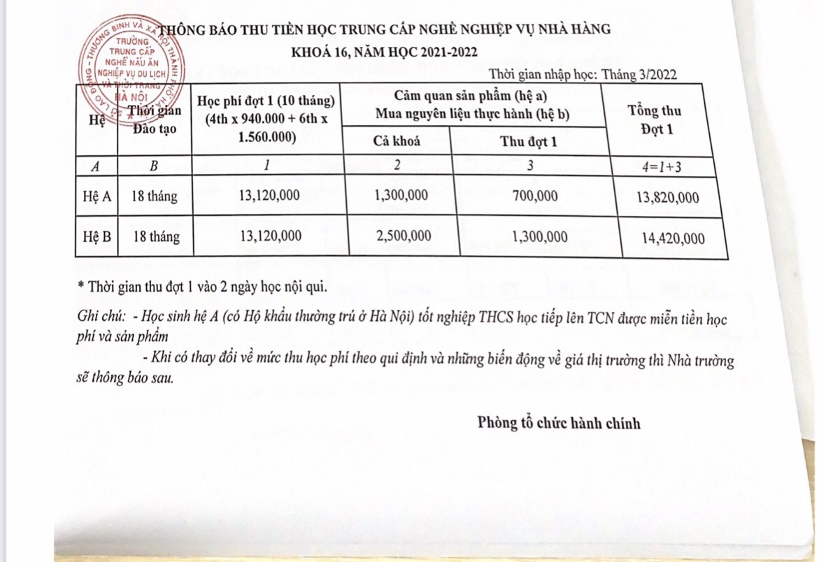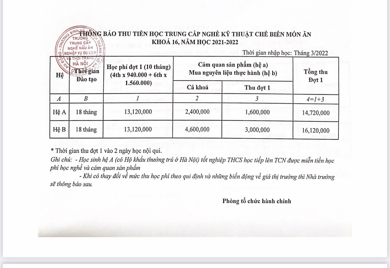 - Nghề Kỹ thuật chế biến món ăn khóa 16